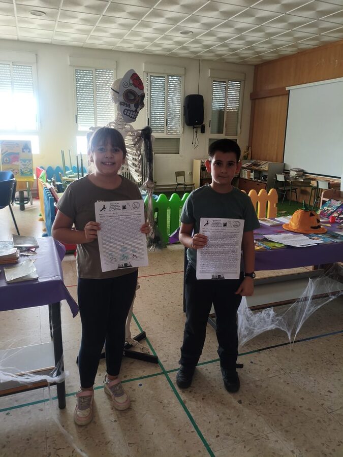 Los mayores del colegio han demostrado su talento literario al crear microrrelatos de terror que han compartido con los más pequeños en la Biblioteca. Un ejercicio de oratoria y de pasar el testigo del susto.